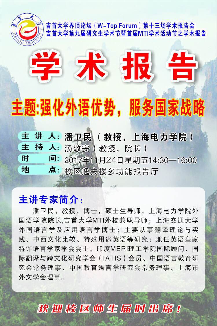 吉首大学界顶论坛(W-Top Forum)第十三场学术报告会